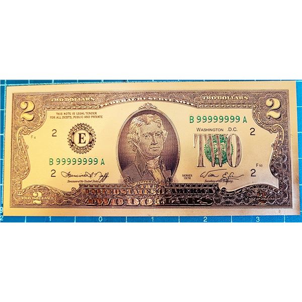 4) USA $2.00 GOLD FOIL BANK NOTE NOT LEGAL TENDER