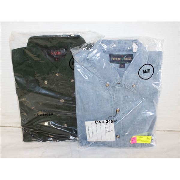 NEW MEN'S SHIRTS 1DENIM/1FOREST GREEN SZ M