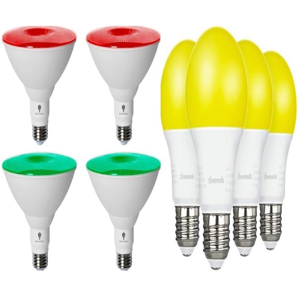 NEW 8PK LED LIGHT BULBS 2 RED 2 GREEN 4 YELLOW