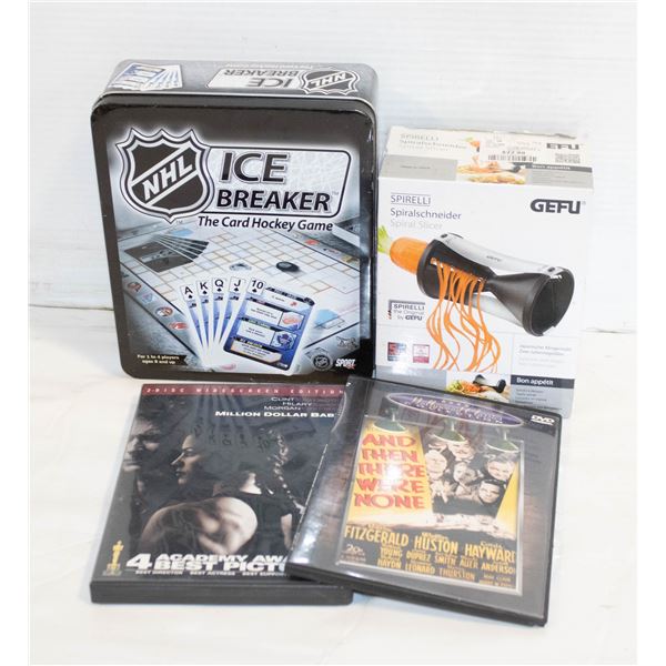 GAME,SPIRAL SLICER AND DVD MOVIES