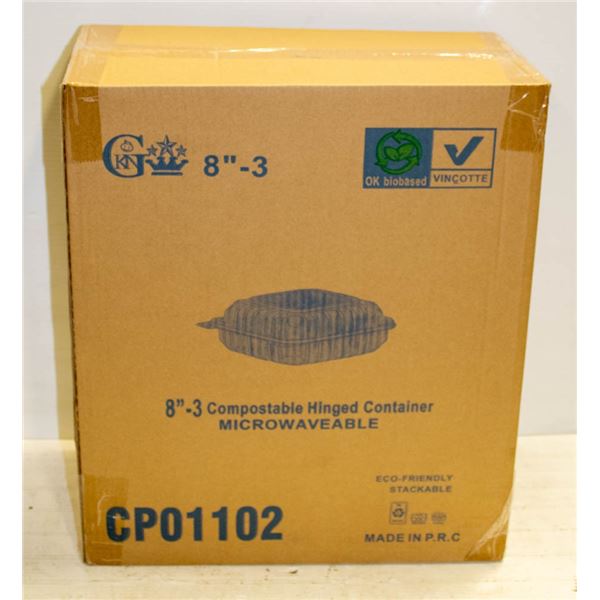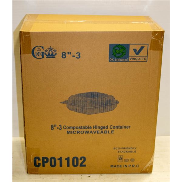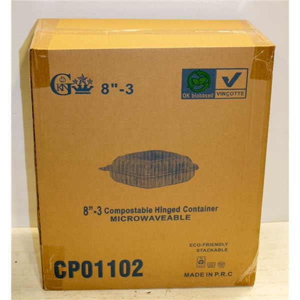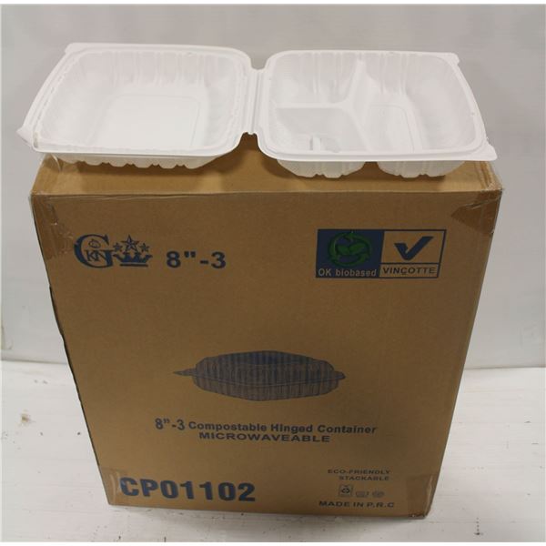 CASE OF 150 8" CLAMSHELL TAKE OUT CONTAINERS