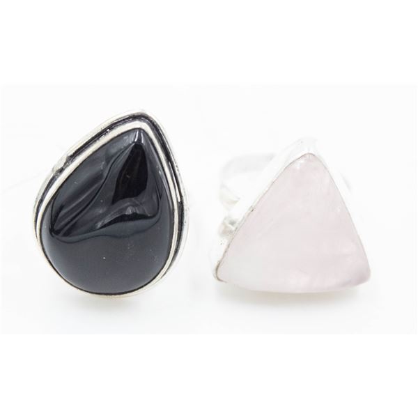 ROSE QUARTZ SIZE 6.25 / OBSIDIAN SIZE 7.5 /SILVER PLATE