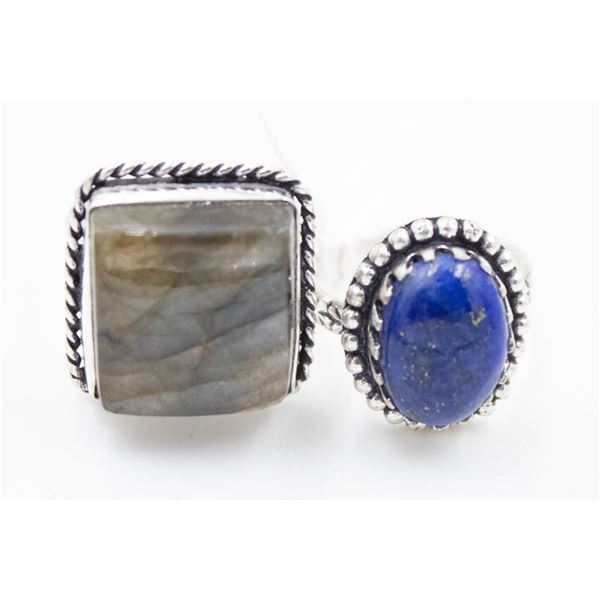 #16-NATURAL LABRADORITE & LAPIZ LAZULI RINGS