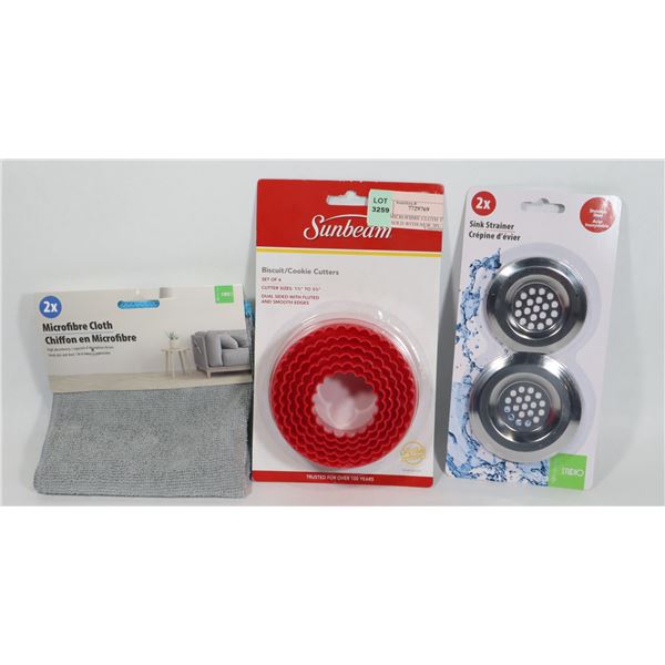 STAINLESS STEEL SINK STRAINER SET, AND NEW 6PC COOKIE CUTTER SET