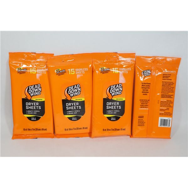 4 NEW 15 PACKS OF DEAD DOWN WIND UNSCENTED DRYER