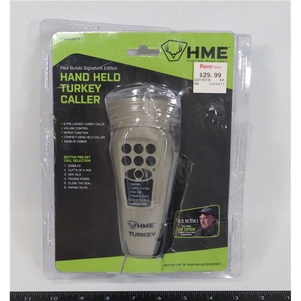 PRODUCT NEW, PACKAGING DAMAGED. 6 PRE-LOADED TURKEY CALLS, VOLUME CONTROL