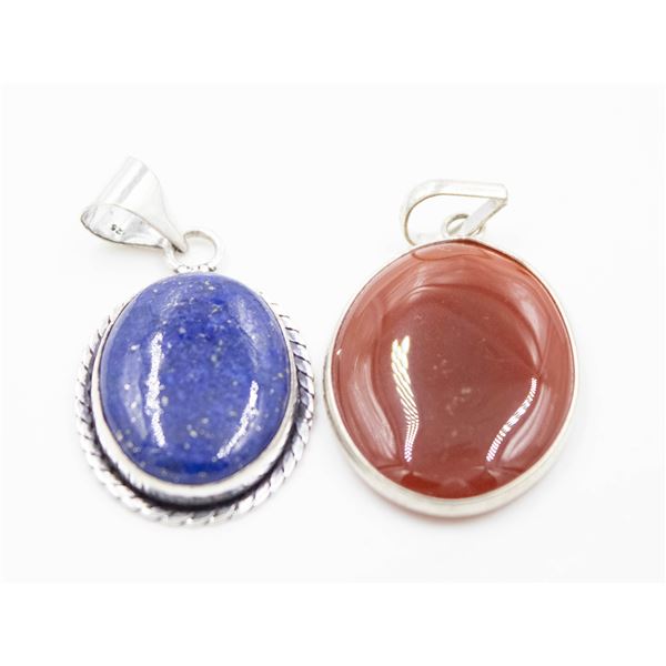 #55-NATURAL CAMELIAN & LAPIS LAZULI PENDANT