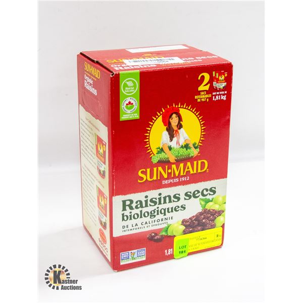 NEW CASE OF SUNMAID ORGANIC RAISINS 1.81KG