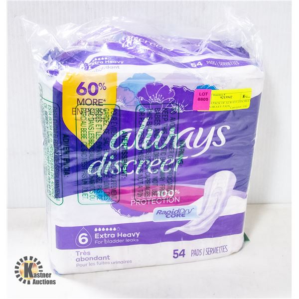 NEW 54 PACK OF ALWAYS DISCREET EXTRA HEAVY PADS