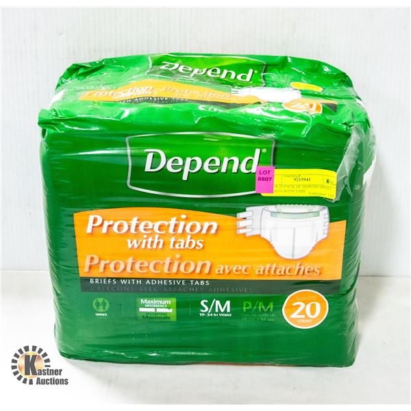 NEW 20 PACK OF DEPEND SMALL BRIEFS WITH TABS