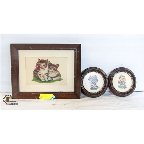 3 ESTATE FRAMED CROSS STITCH STYLE WALL HANGINGS