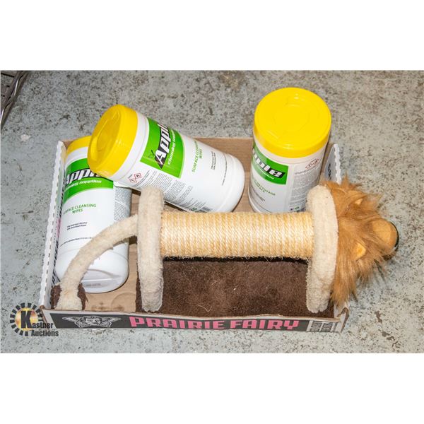 ALCOHOL WIPES EXPIRY MARCH 2023 + USED SMALL CAT SCRATCHER