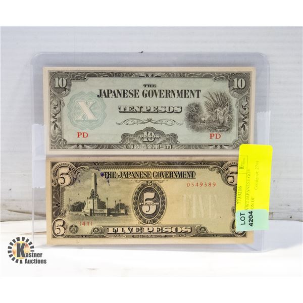 LOT OF 2 WW2 JAPANESE GOV OCCUPATION OF