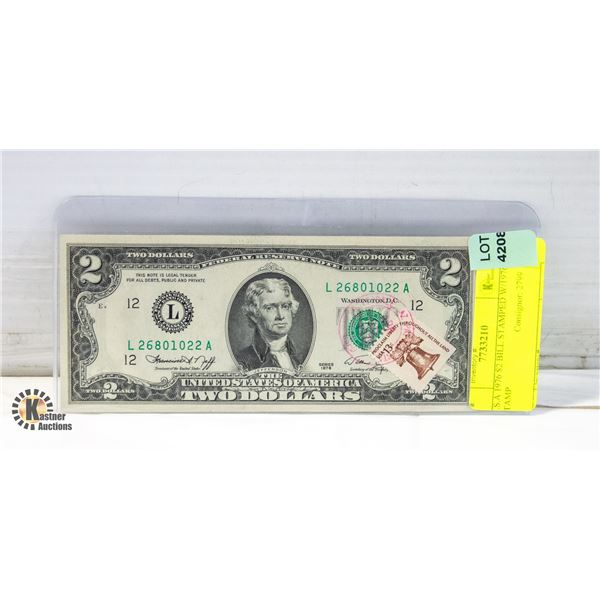U.S.A 1976 $2 BILL STAMPED W/1976 STAMP