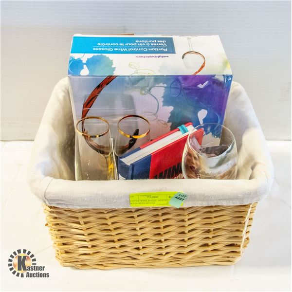 WINE GLASSES, CHAMP. FLUTES, WINE BOOKS, WINE GLASSES BOXED, WEIGHT WATCHERS PORTION CONTROL WINE GLASSES, CHAMPAGNE FLUTES (2) AND WINE BOOKS