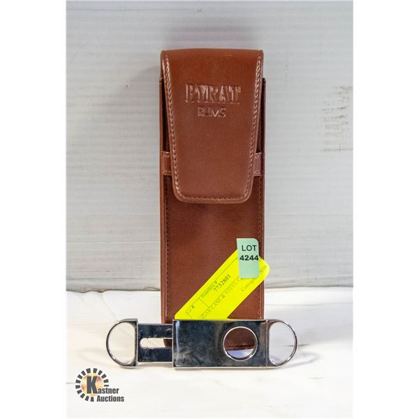 BROWN SECTIONED PYRAT RUM' CIGAR CASE WITH STEEL CIGAR CUTTER