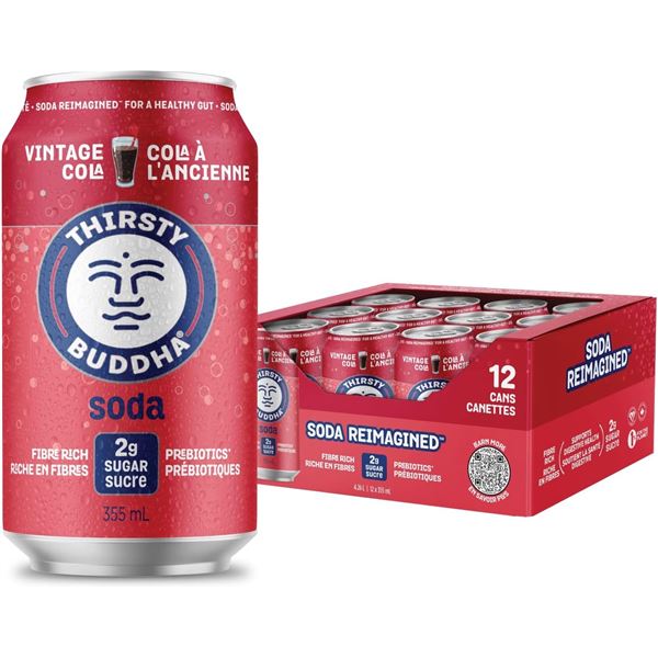 NEW CASE OF THIRSTY BUDDHA VINTAGE COLA - 12 CANS