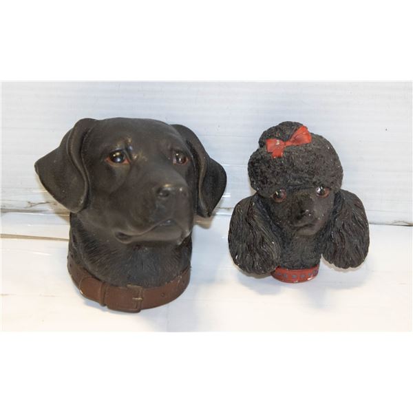 2 BOSSON DOG HEADS BLACK LAB & POODLE