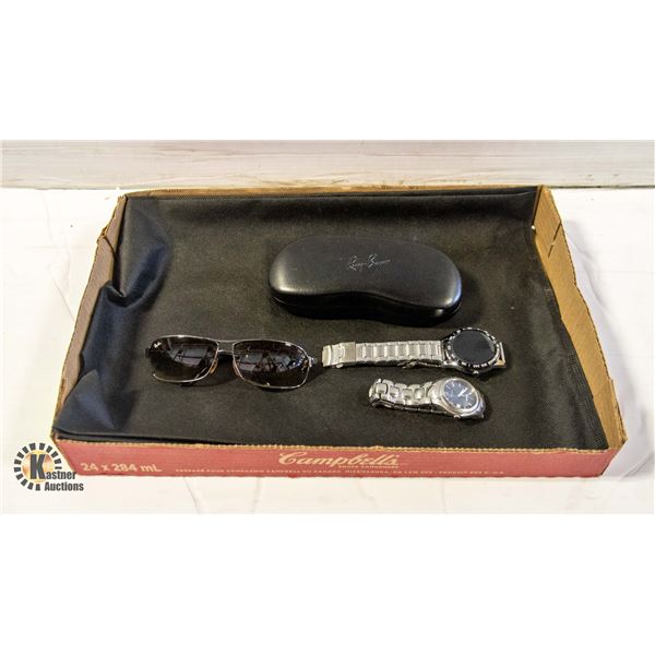 RAY-BAN SUNGLESS CASE & 2 WATCHES