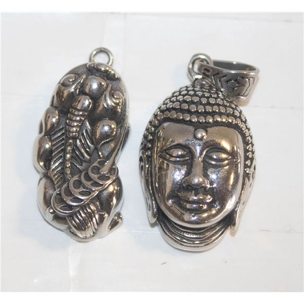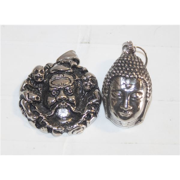 2 LARGE BUDDHA HEAD PENDANT CHARMS TOGETHER