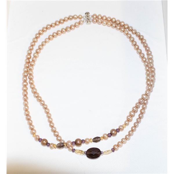SILVER .925 PRL/STONE BIG DOUBLE STRAND