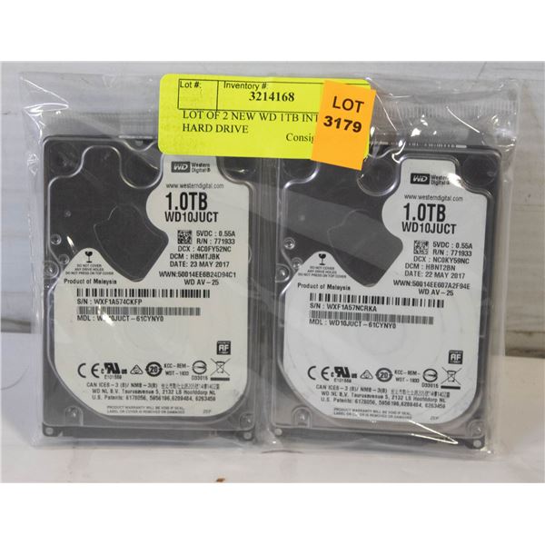 LOT OF 2 NEW WD 1TB INTERNAL HARD DRIVE