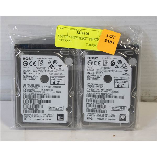 LOT OF 2 NEW HGST 1TB 7200RPM INTERNAL