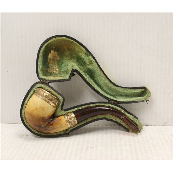 ANTIQUE MEERSCHAUM PIPE W GOLD IN BOX AS IS