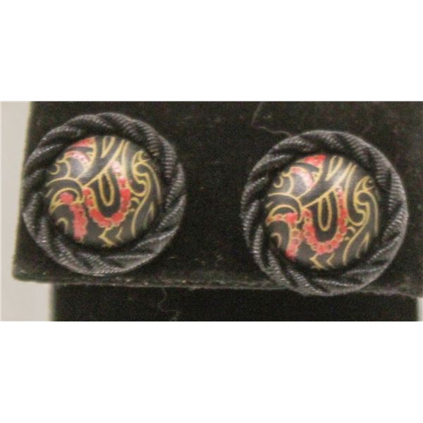 VINTAGE BLACK ENAMEL DECO EARRINGS