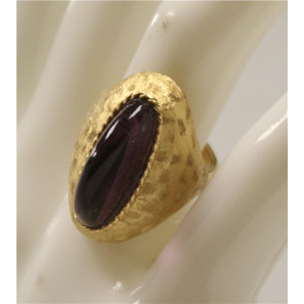 GOLD TONE ADJ RING W LARGE GLASS CENTRE
