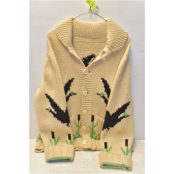 1950S KNIT SWEATER JACKET W BIRDS MED