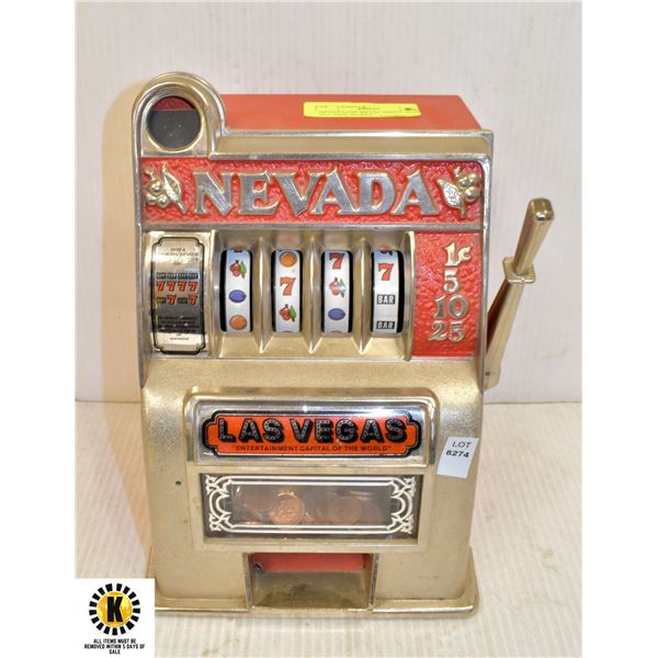 HEAVY CAST METAL SMALL SLOT MACHINE WORKS