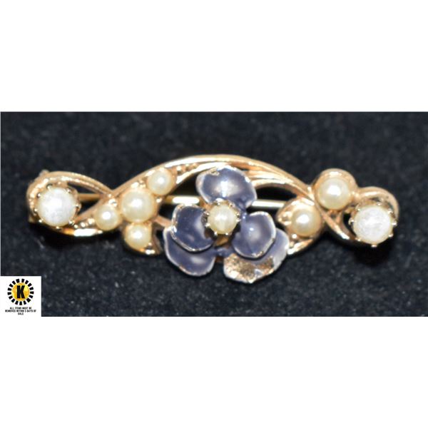 GOLD TONE AND PEARL STYLE BROOCH