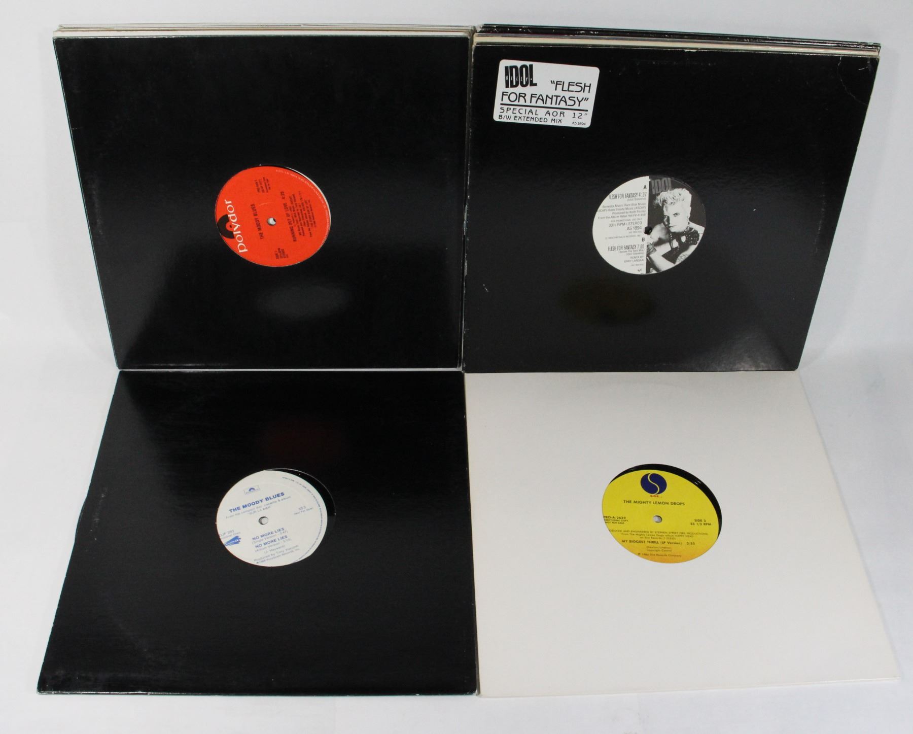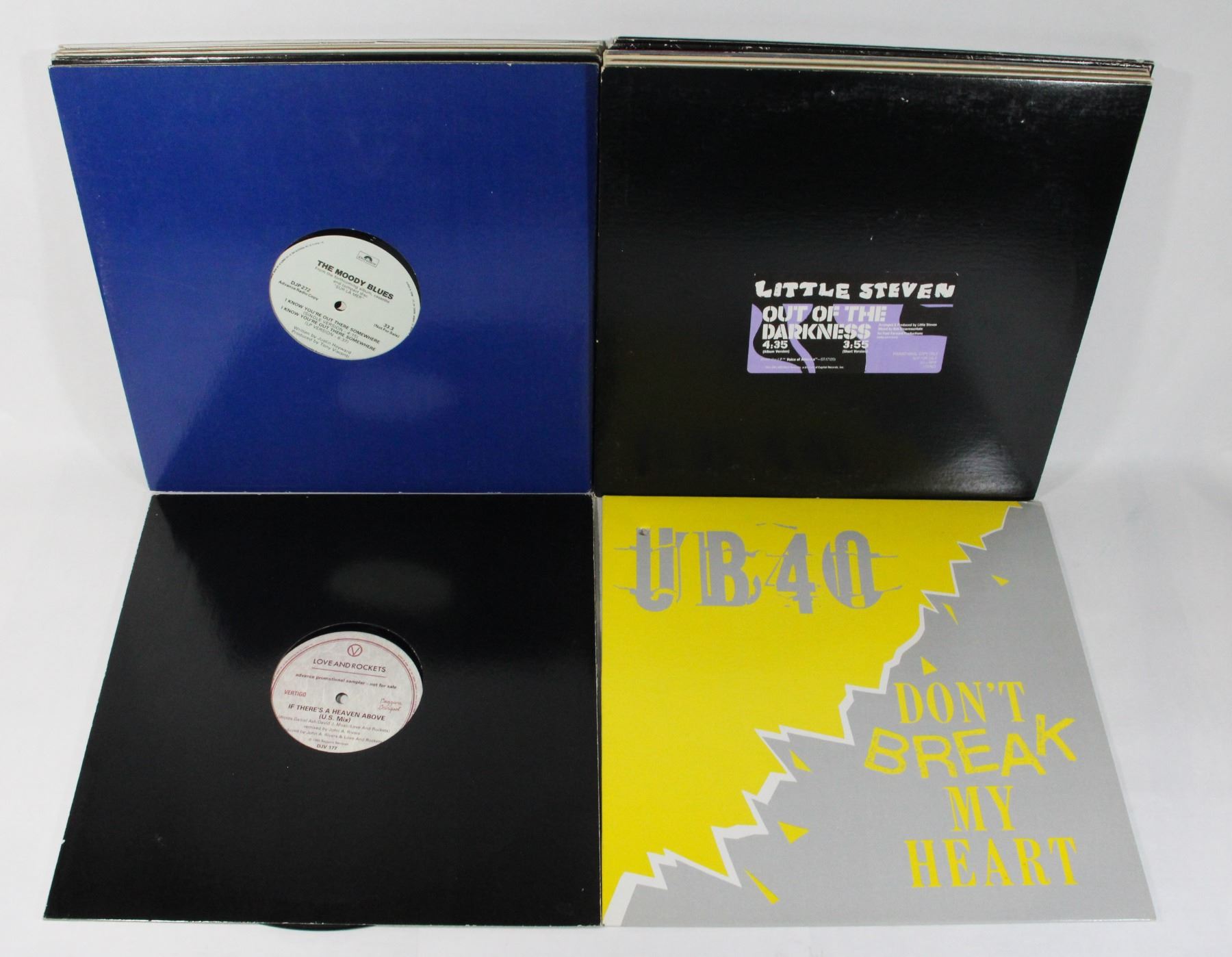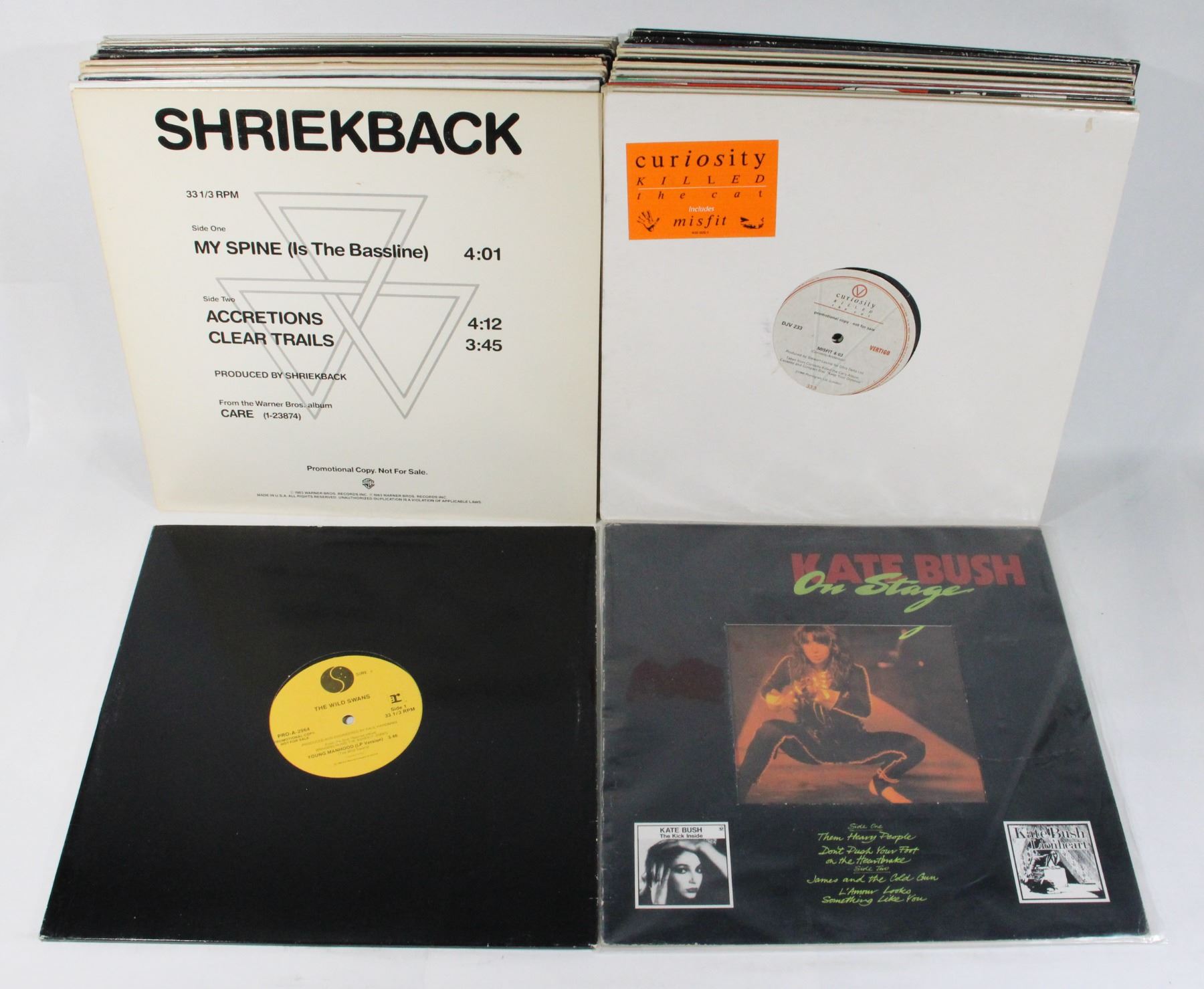 OF 12" RECORDS. APPROX 35 RECORDS - Kate Bush - On Stage (super rare Canadian version with 7 inch record housed in 12 inch packaging), Moody Blues, Peter Murphy (Bauhaus), Love & Rockets, Frankie Goes To Hollywood, O.M.D., General Public and