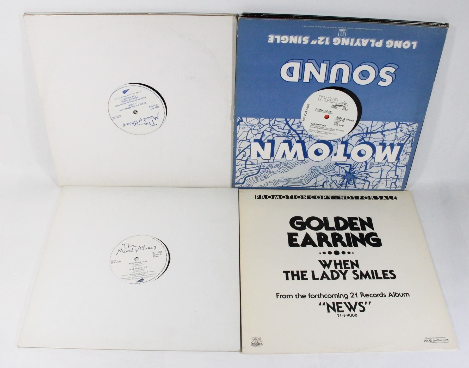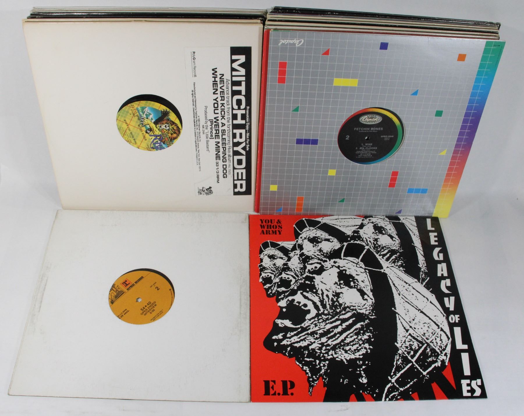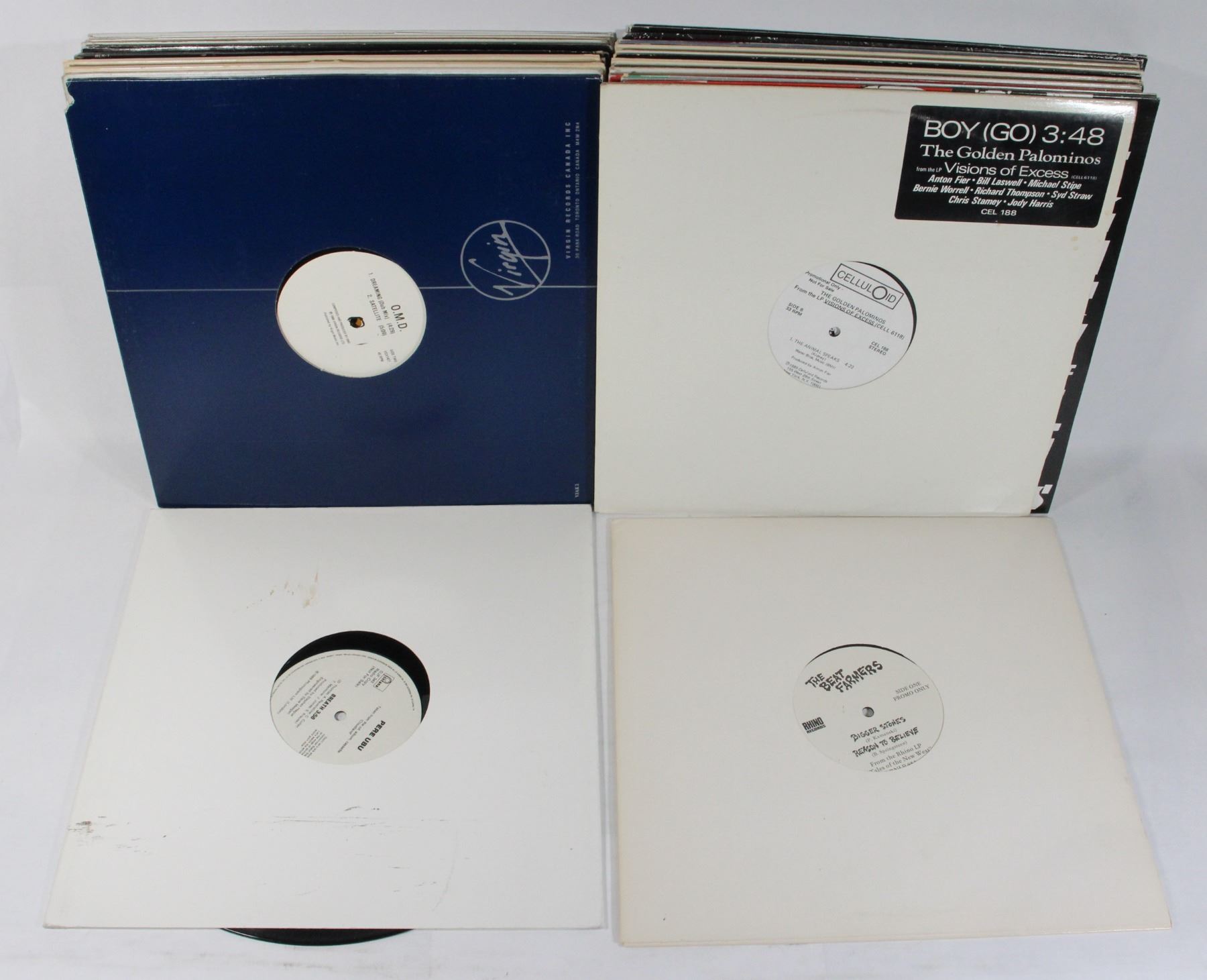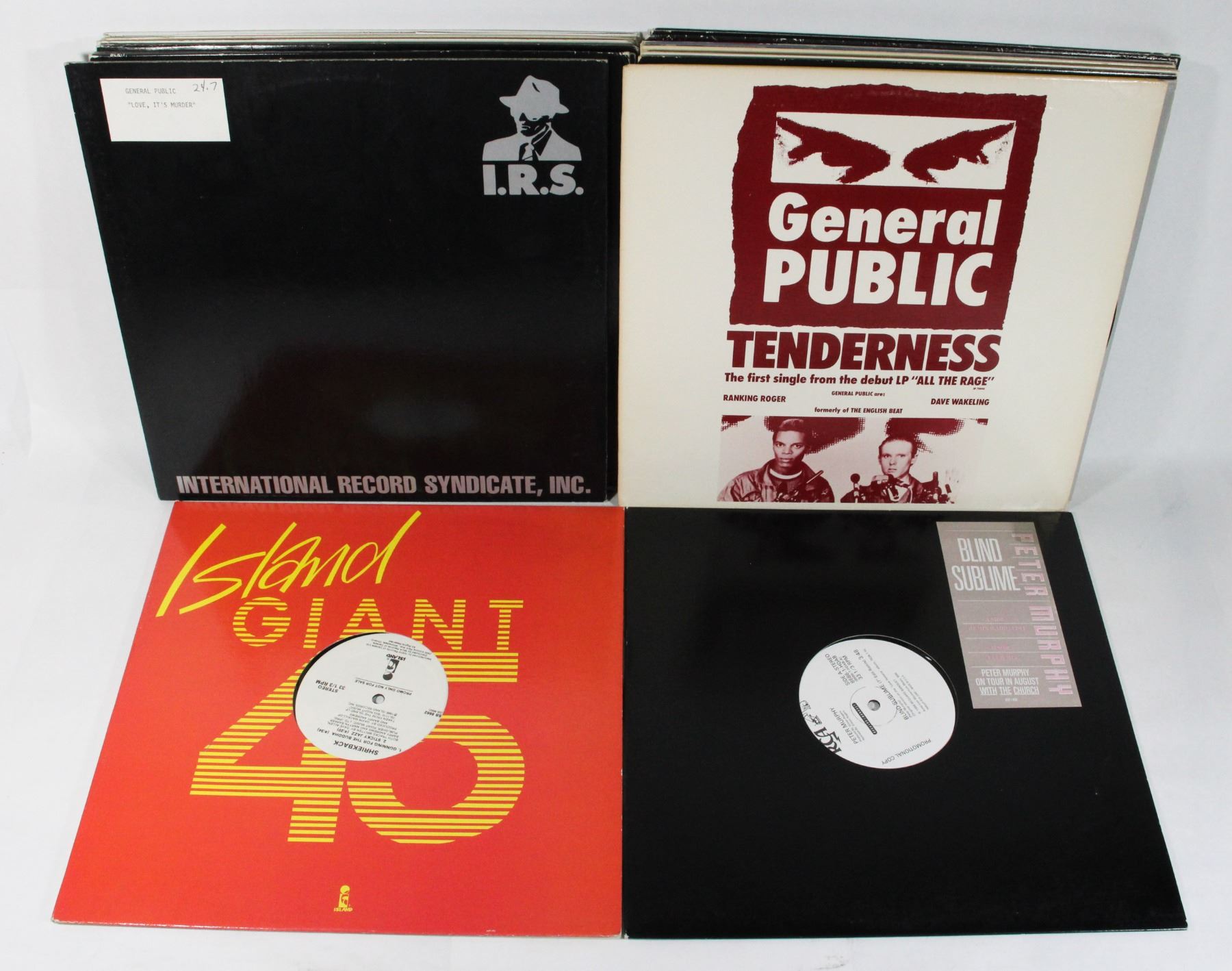 OF 12" RECORDS. APPROX 35 RECORDS - Kate Bush - On Stage (super rare Canadian version with 7 inch record housed in 12 inch packaging), Moody Blues, Peter Murphy (Bauhaus), Love & Rockets, Frankie Goes To Hollywood, O.M.D., General Public and