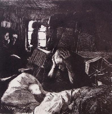 The work was originally printed as the first plate in Kollwitz's famous series 'Ein Weberaufstand'.