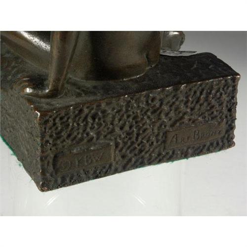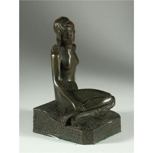 BRONZE: Bronze over form sculpture of seated nude woman, cipher of Kathodion Bronze Works (1910-1916), 5.75'' x 5'' x 9.5''
