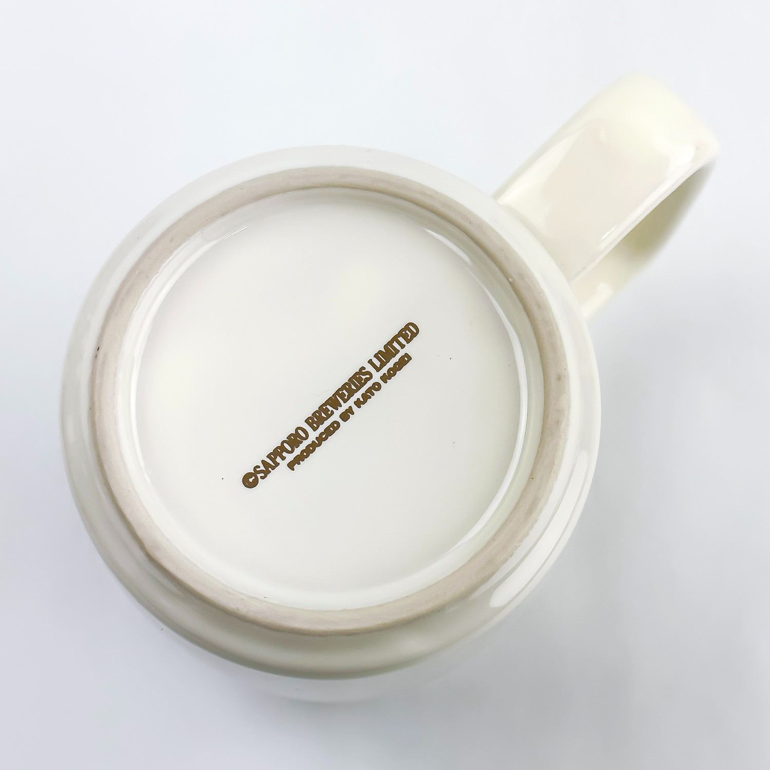 #8345 - HARD-TO-FIND CERAMIC DRAFT BEER MUG/STEIN BY CERAMIC ARTIST KATO KOGEI. SAPPORO BREWERIES LTD. BY KATO KOGEI. SAPPORO CLASSIC 100% FINE MALT DRAFT BEER ADVERTISING BAR MUG STEIN CUP. MEASURES: 4.75” (12 CM) TALL BY 5” (12.5 CM) WIDE - INCLUDES HANDLE AND 3.125” (8 CM) DIAMETER BASE