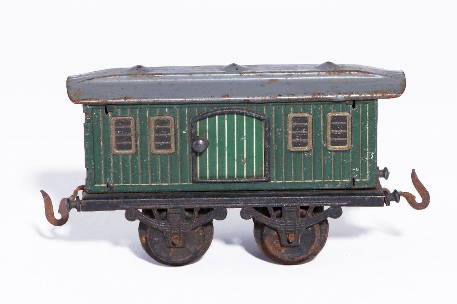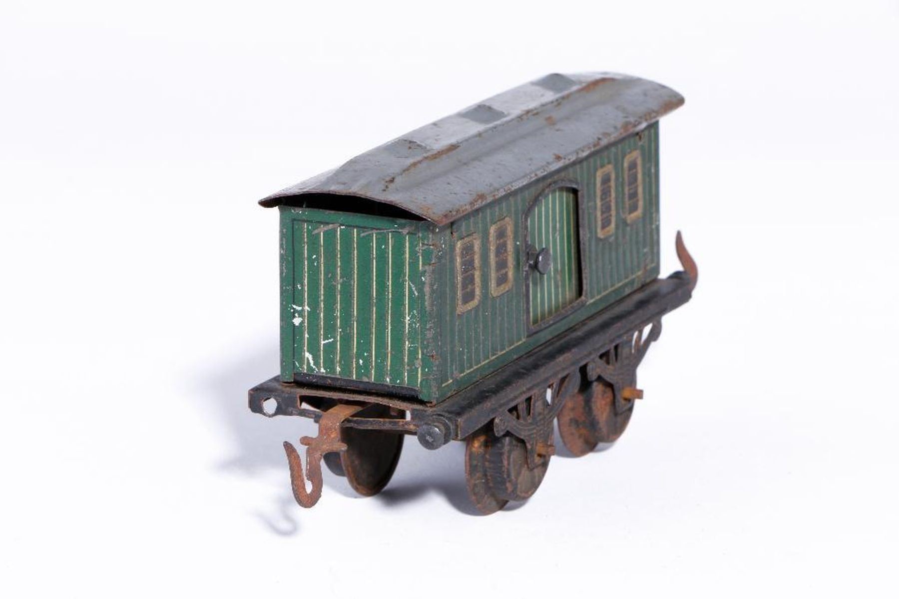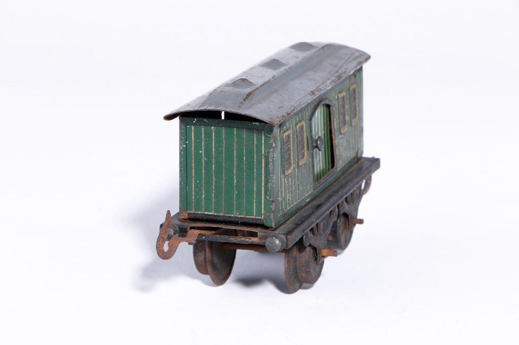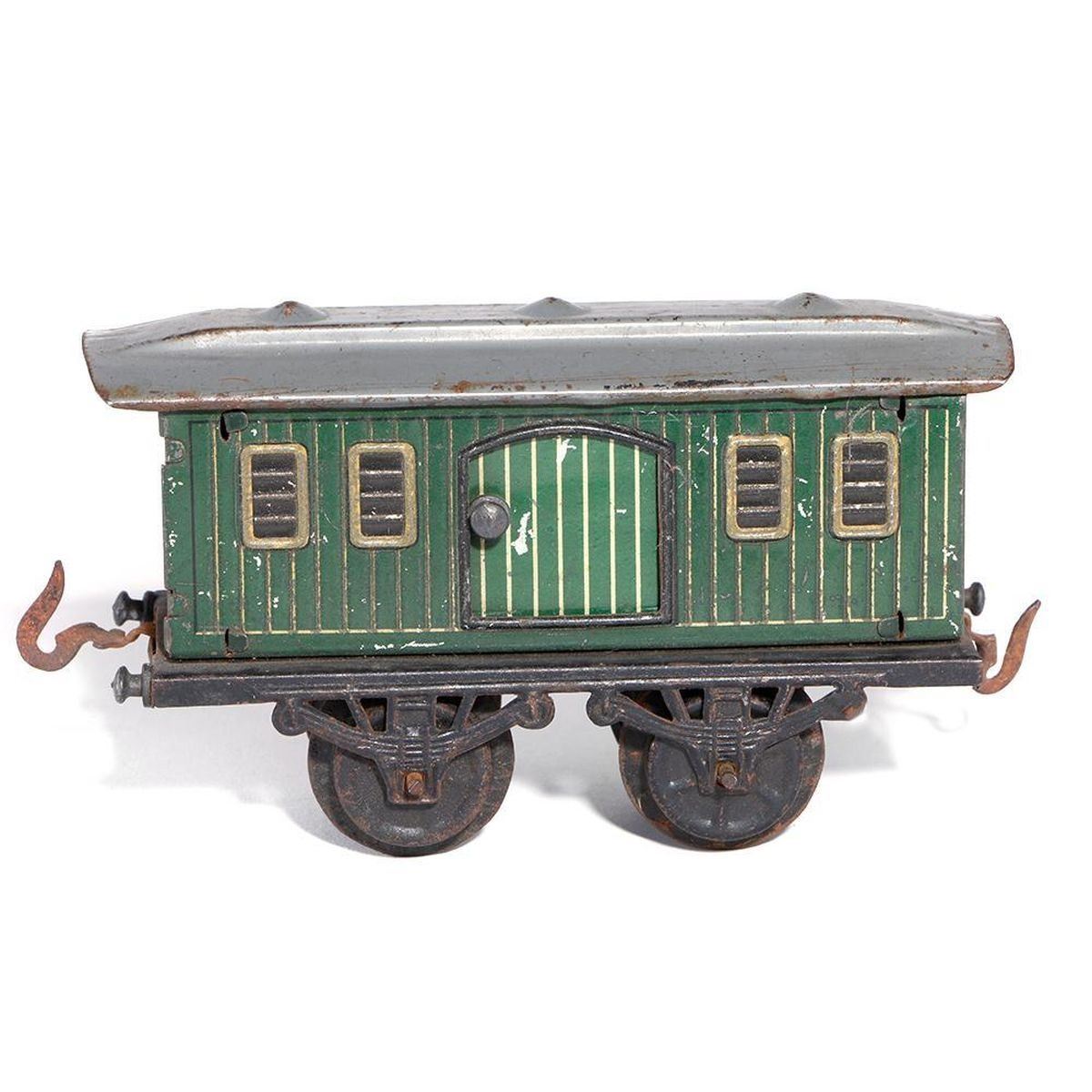 (4) wheel lithographed tinplate baggage carwith simulated windows/vents, green/goldhighlights (minor surface rust on wheels), C-4/5