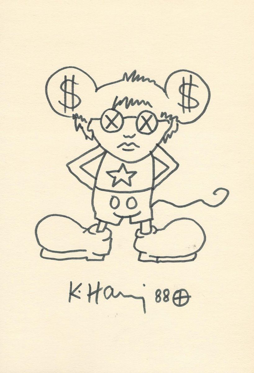 Keith Haring drawing. Felt tip pen on paper. Supplied with coa. 6x8.5 inches.
