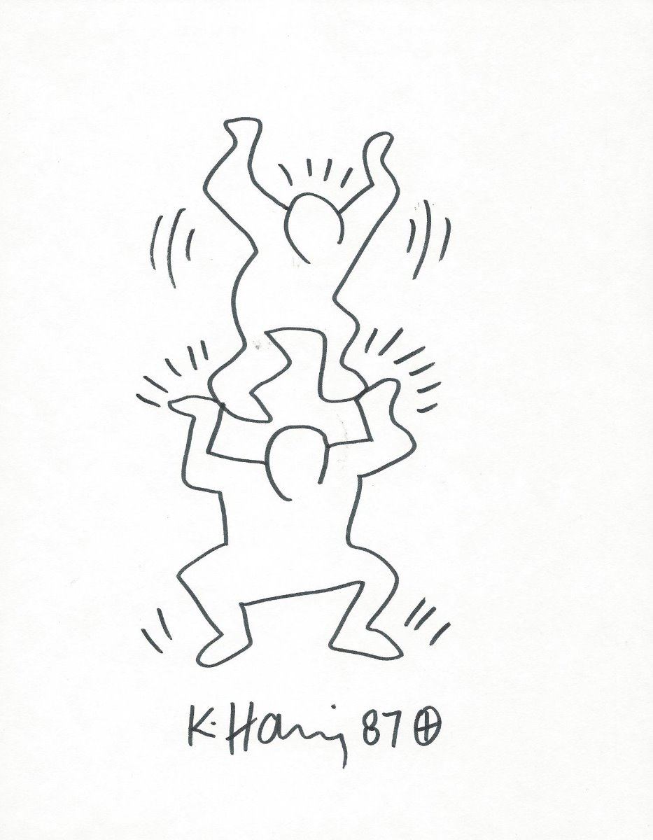 Keith Haring: Stacked men. Medium: Felt tip pen on paper. Supplied with coa.