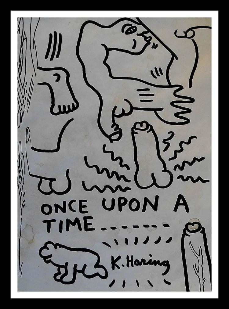 A rare drawing from Keith Haring featuring a lot of men's genitalia (A popular topic that featured in many of Haring's works). An extract of what Keith Haring said about Debbie dick from Rolling stones: Teachers everywhere ask me for safe-sex stickers. In the United States people are shy to talk about safe sex. In Europe it's completely acceptable. A lot of what we see here is more tame because of some people's preconceived notions of what they think people can handle. In fact, when people are treated as if they have some intelligence and are given explicit information, they appreciate it. And it's the only thing that gets through to kids, the people that need it. The drawing is professionally mounted and framed in hard wood Ramin. Ramin is native to southeast Asia from the Malaysian Peninsula to Sumatra and Borneo. Ramin has good working properties and outstanding strength-to-weight characteristics. Condition Report: Good but with some stains as shown in the image. Provenance: Supplied with coa.