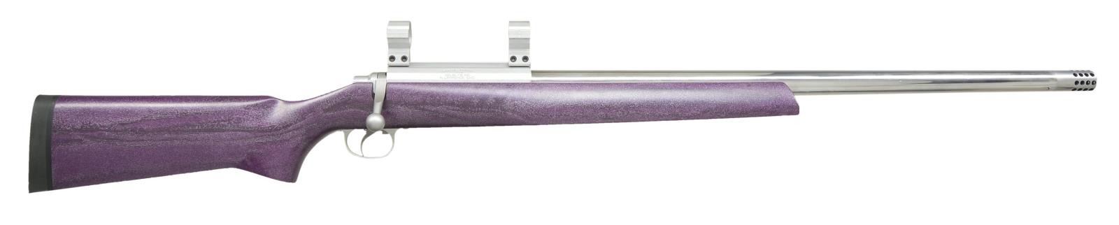 Cal. 6.5 x 284 Win. S# 06131. Bbl. 27" including multi port (sides & front) muzzle brake; actual bbl. 25 1/2" w/ recessed crown. Polished stainless bbl.; 1.2" diameter at receiver & 1.0" at muzzle. Mfg. 2006 as Kelbly full build F Class using Stolle Panda aluminum action having spiral fluted matching numbered bolt w/ Model 70 style push feed style extractor & Model 700 style bolt shroud; long bolt handle clearanced for scope. Benchrest style fiberglass/graphite color impregnated metal flake purple stock w/ Pachmayr solid black Decelerator pad. Natural finished machined aluminum trigger guard & Jewel trigger; appears about 2 oz. Grooved single shot receiver w/ multiple flats & left side port. Matching Kelbly natural finished aluminum rings. Top tier competition rifle designed for 1,000 yd. matches. Current retail is approx. $5,000. CONDITION: every aspect of rifle is near excellent; possibly unfired. (21-4600/NW). MODERN. $1,500-2,000.