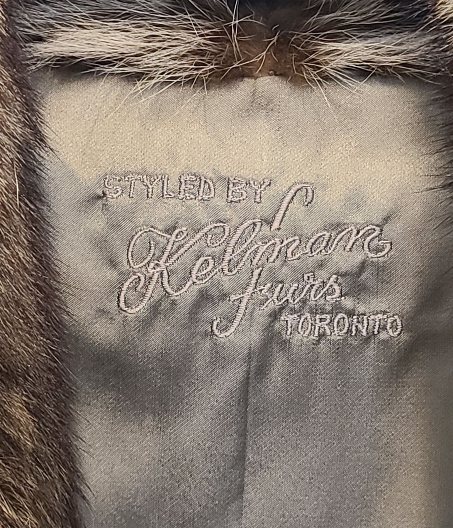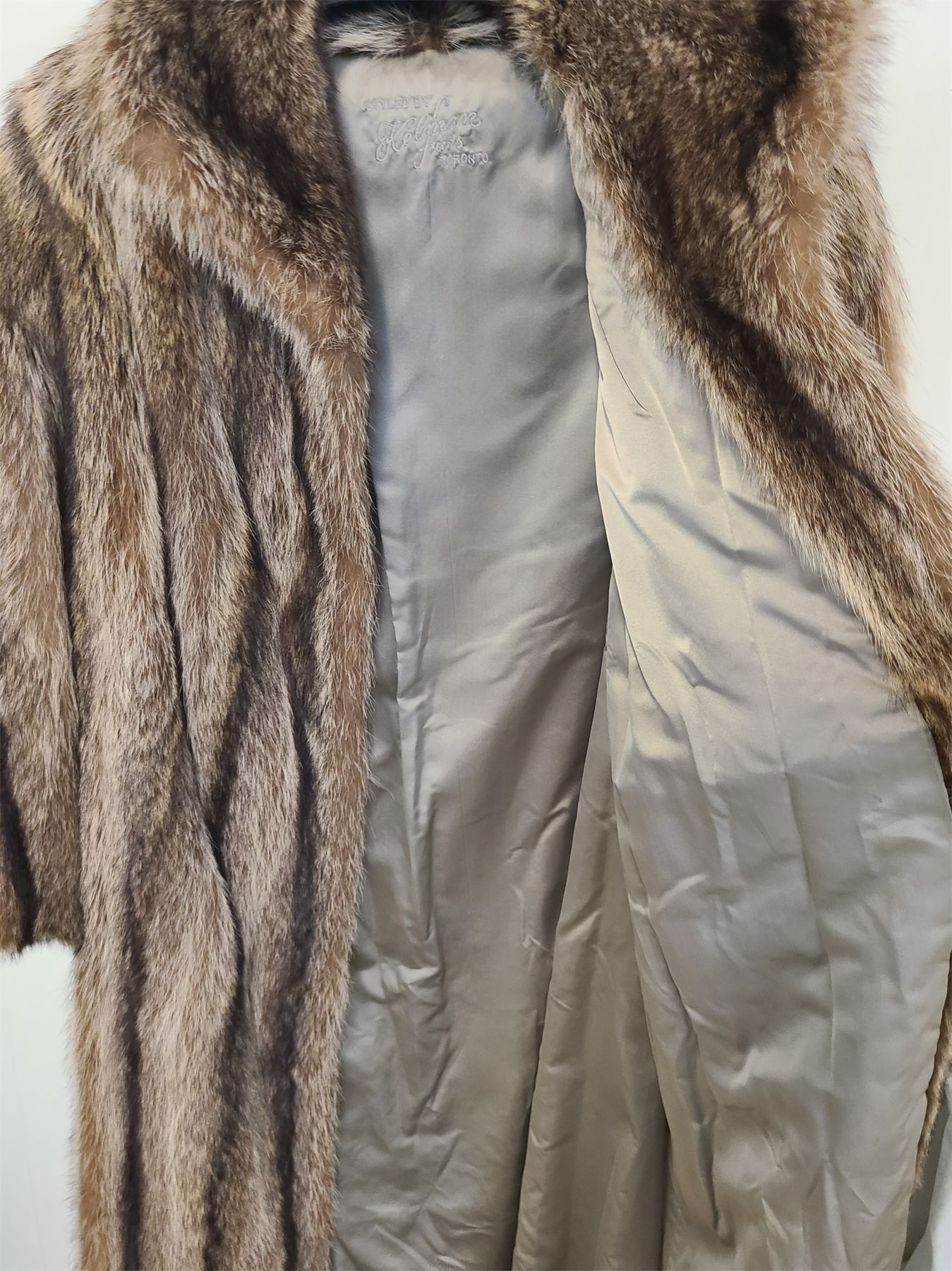 NOTE: MONOGRAMED - APPROX WOMENS SZ SMALL-MED - APPROX 52IN LONG. SOFT & SUPPLE CONDITION. HAS BEEN STORED PROPERLY.