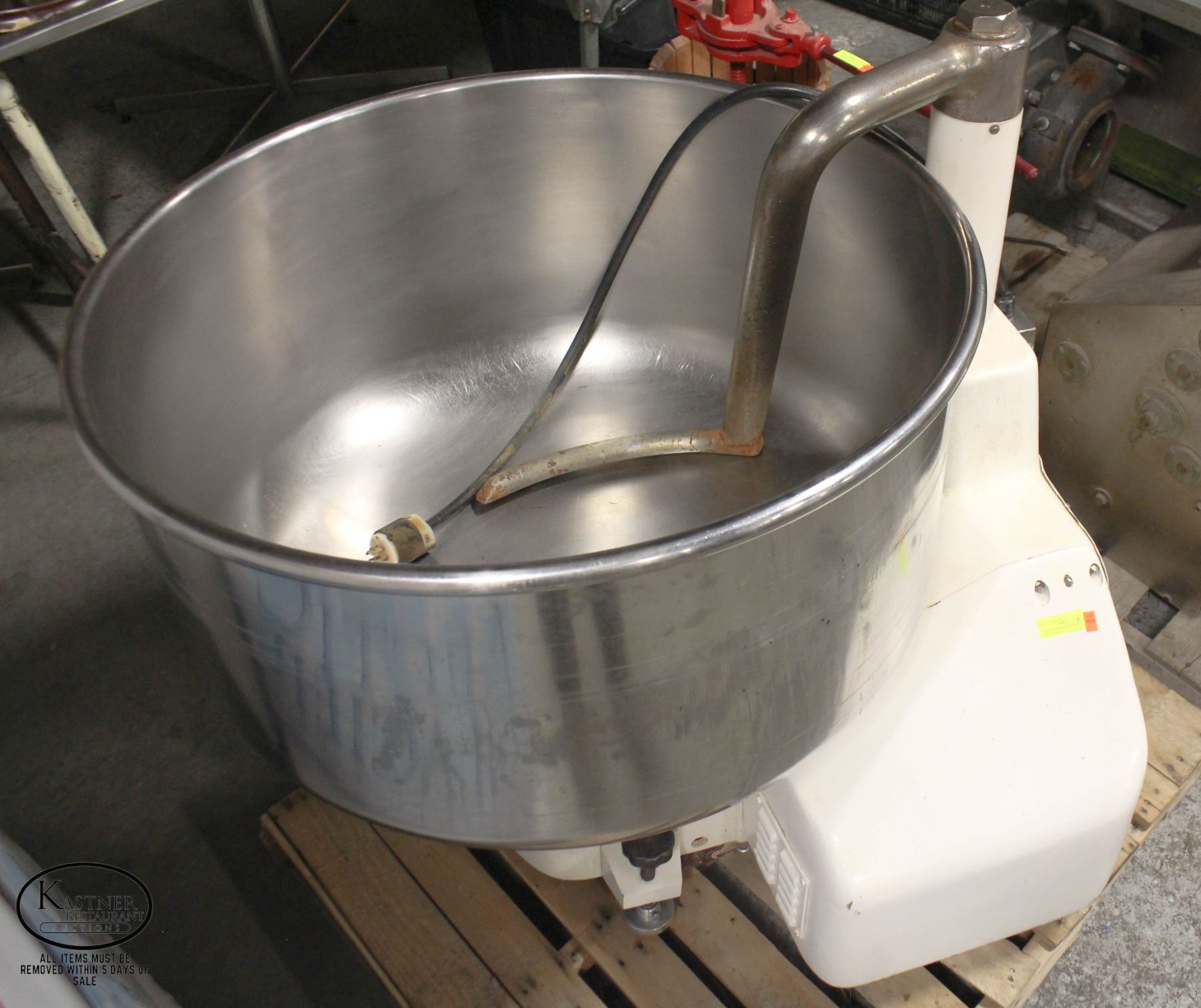DOUGH MIXER. EXACT SPECS UNAVAILABLE. PLUG RATED FOR 250V, 3 PHASE, 20A. 2 SPEEDS. L-SHAPE MIXER_x000D_