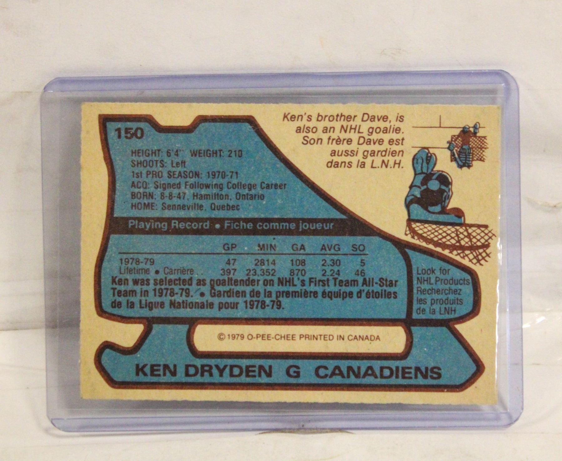 KEN DRYDEN GOALIE CANADIENS 1979 RAW CARD