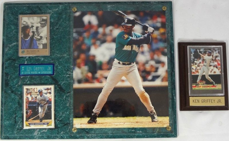 1 - 12 x 15 with 8 x 10 Photo and 2 Griffey Jr Cards. 1 - Card Plaque Stadium Club. EST $30.00-$45.00