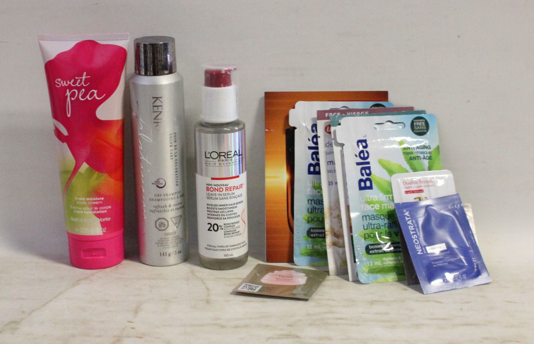 SWEET PEA BODY CREAM, 4 FACE MASKS, 5 VARIOUS FACE SAMPLES