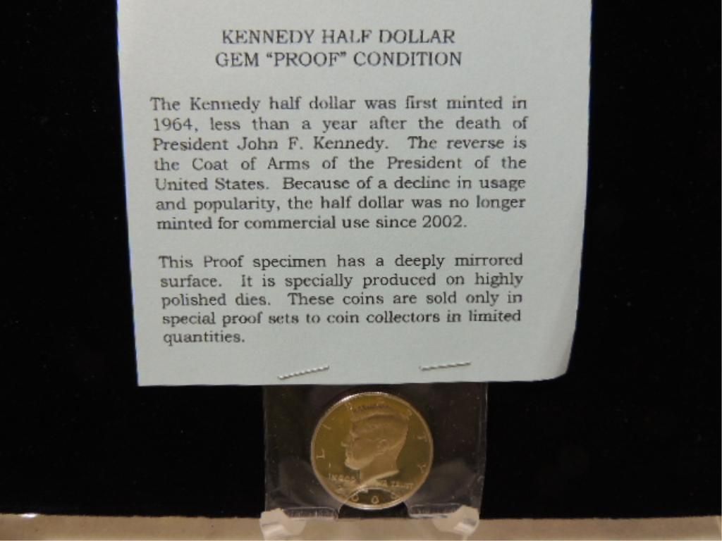 THE KENNEDY HALF DOLLAR WAS THE FIRST MINTED IN 1964, LESS THAN A YEAR AFTER THE DEATH OF PRESIDENT JOHN F KENNEDY. BECAUSE OF THE DECLINE IN USE THE HALF DOLLAR WAS NO LONGER MINTED FOR COMMERCIAL USE SINCE 2002.