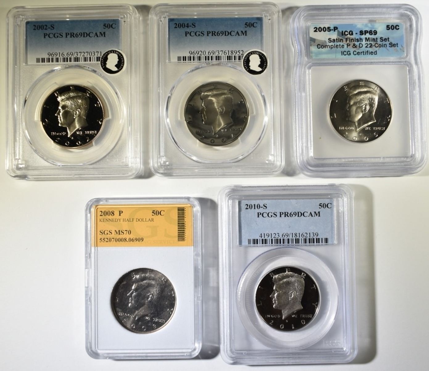 ALL PCGS PR-69 DCAM. 2005-P ICG SP-69 SATIN FINISH. AND 2008 SGS PERFECT GEM BU ESTIMATE $75 - $85.